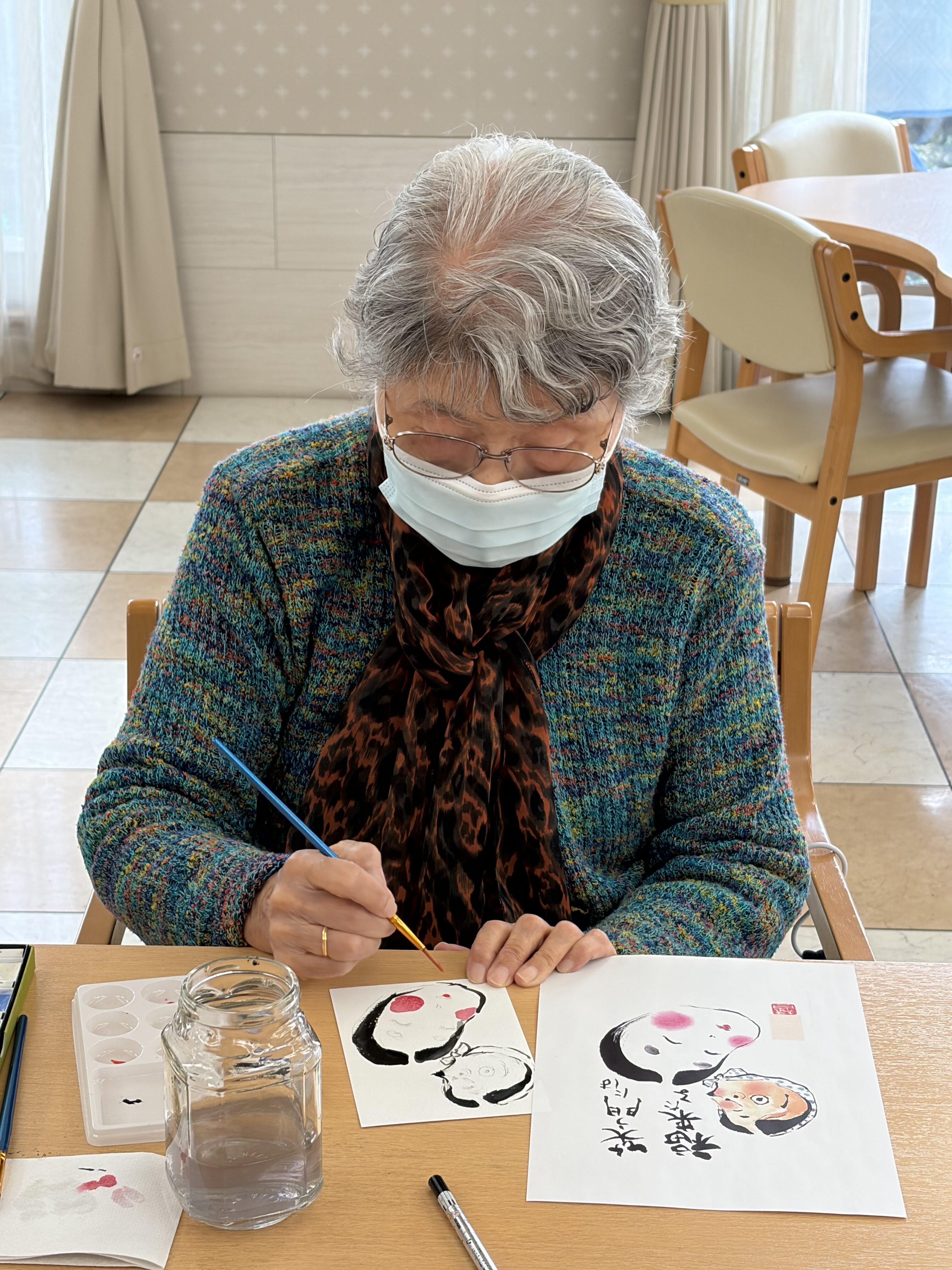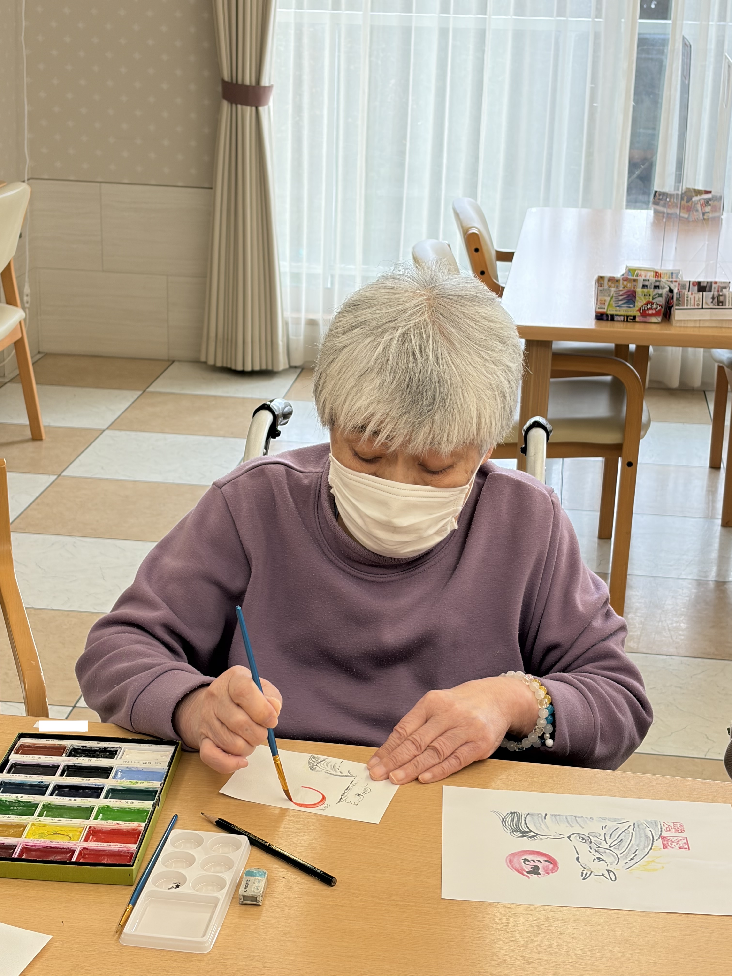 2026年は「午年」ですね。1月に関連する題材の絵手紙なので、馬のイラストをご用意致しました♪ 真剣に描いていらっしゃいます。