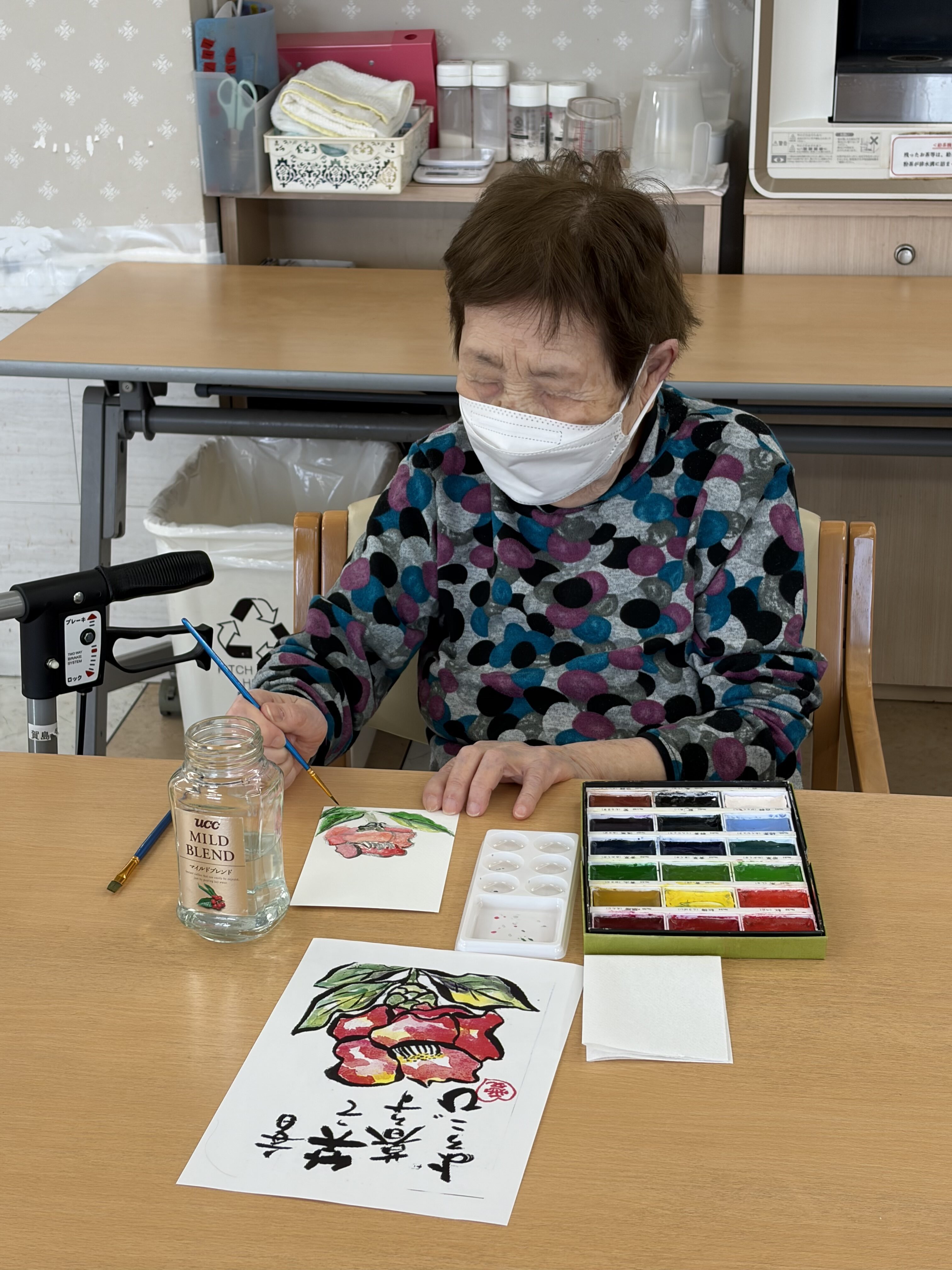 2025年12月の絵手紙レクリエーションは、「1月の草花や季節のもの」をテーマにしたお見本をご用意致しました。