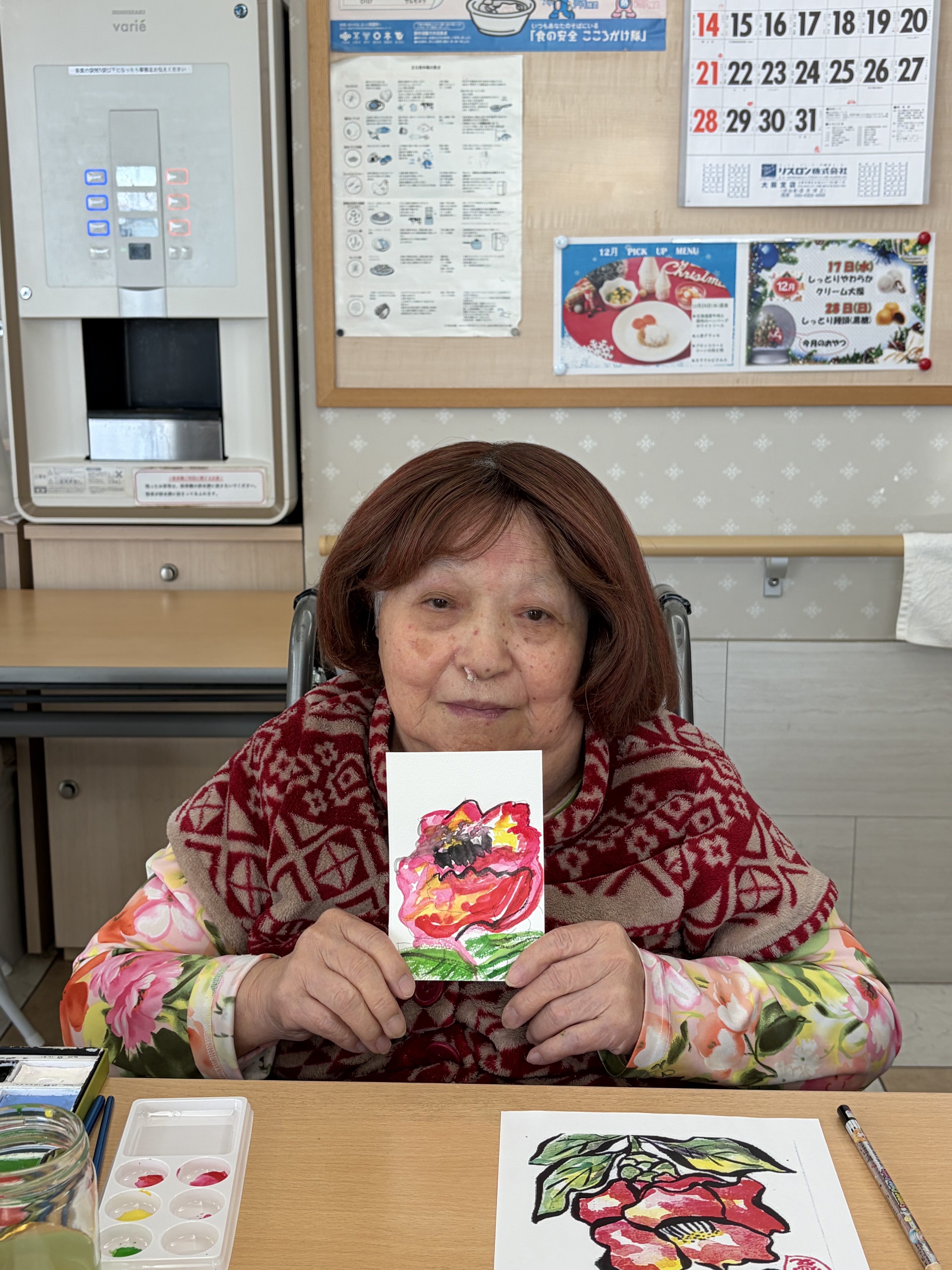 お見本とほぼ変わりのないような素敵な絵手紙が完成しました☆ 「上手くできませんでしたわ」とおっしゃっていましたが本当にとってもお上手です♪