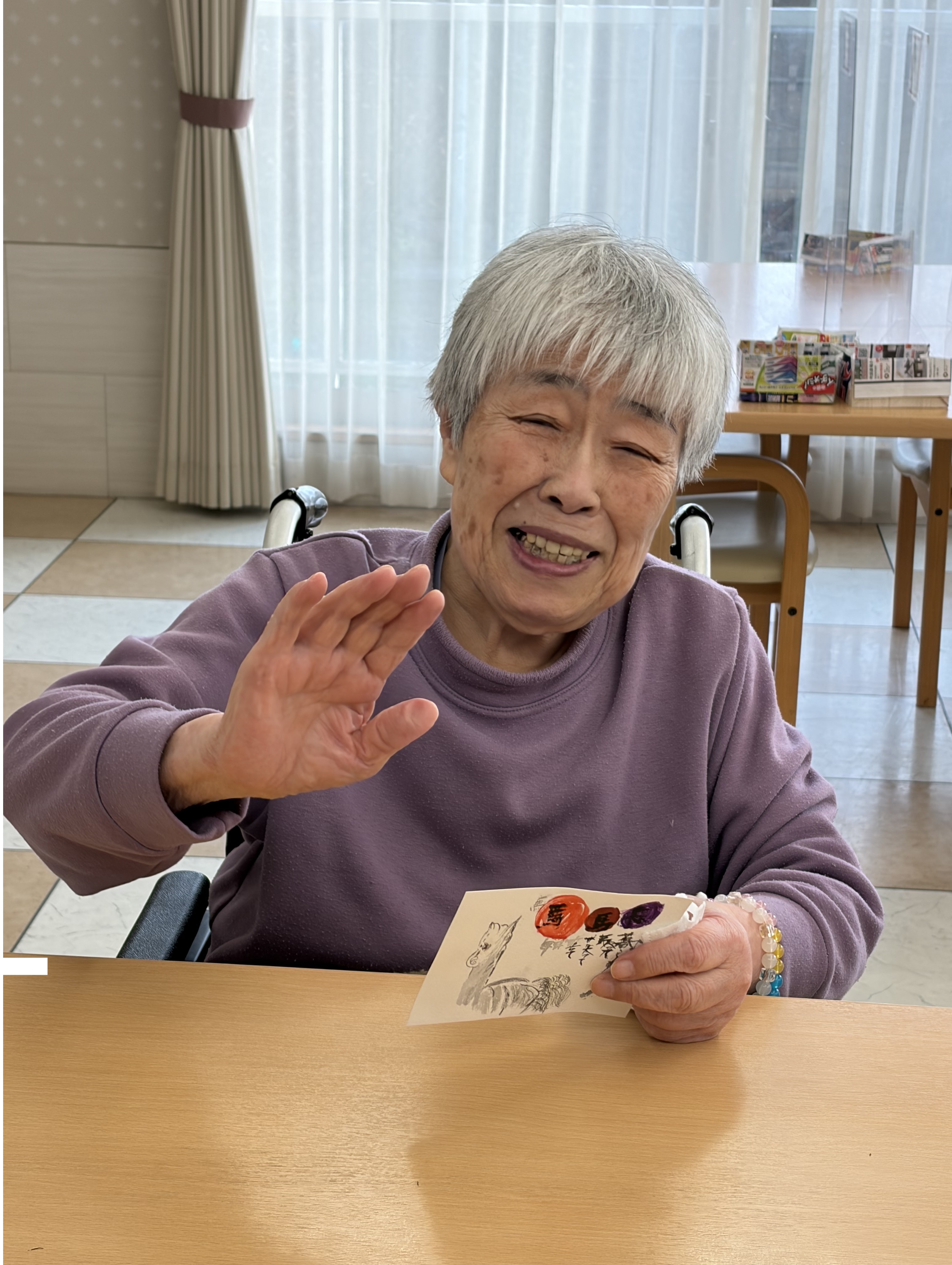 こちらのご入居者様も馬のイラストを描いていらっしゃいますね♪ お見本にそっくりです!丁寧に下書きをして色付をしていらっしゃいます♪