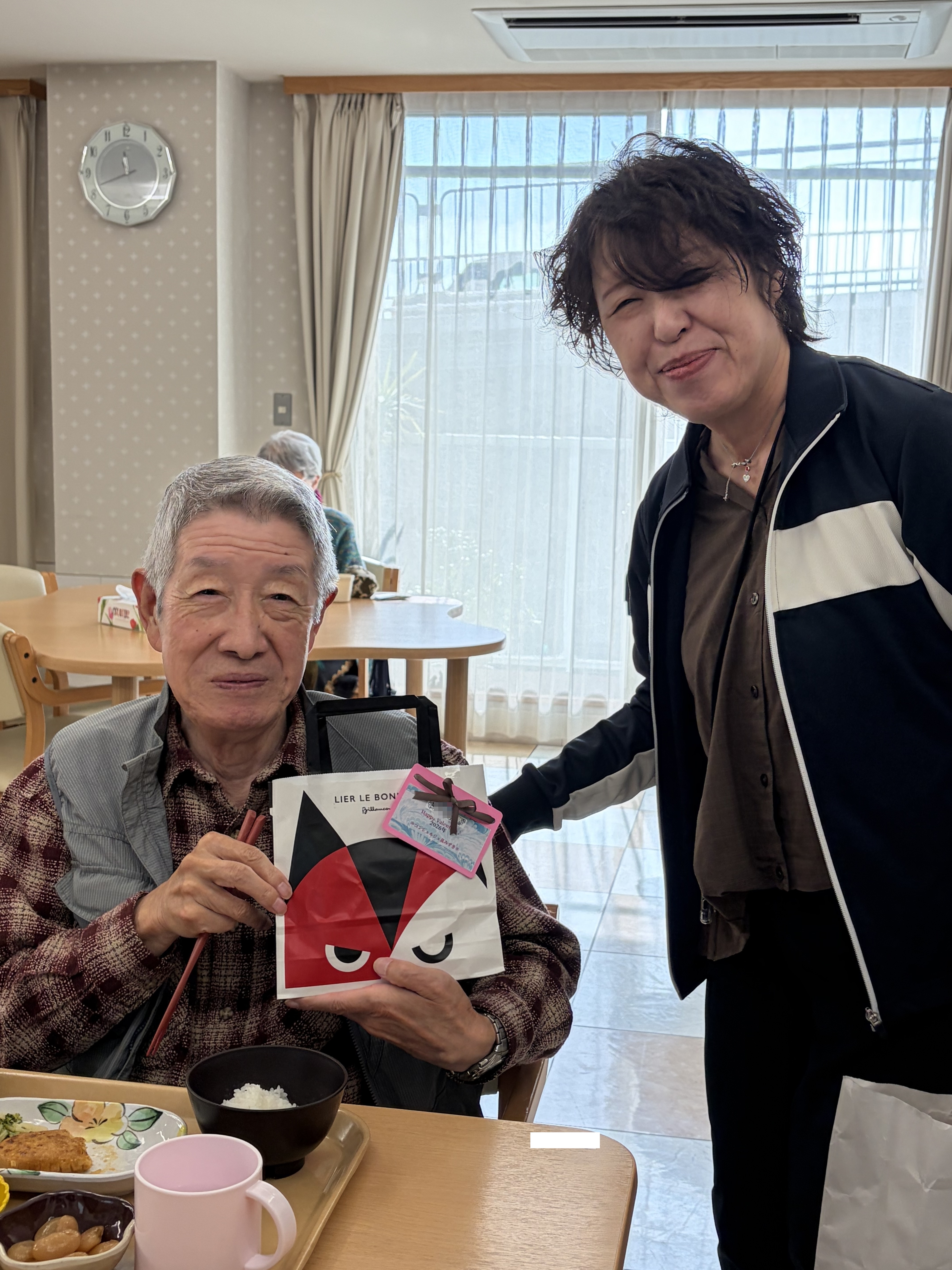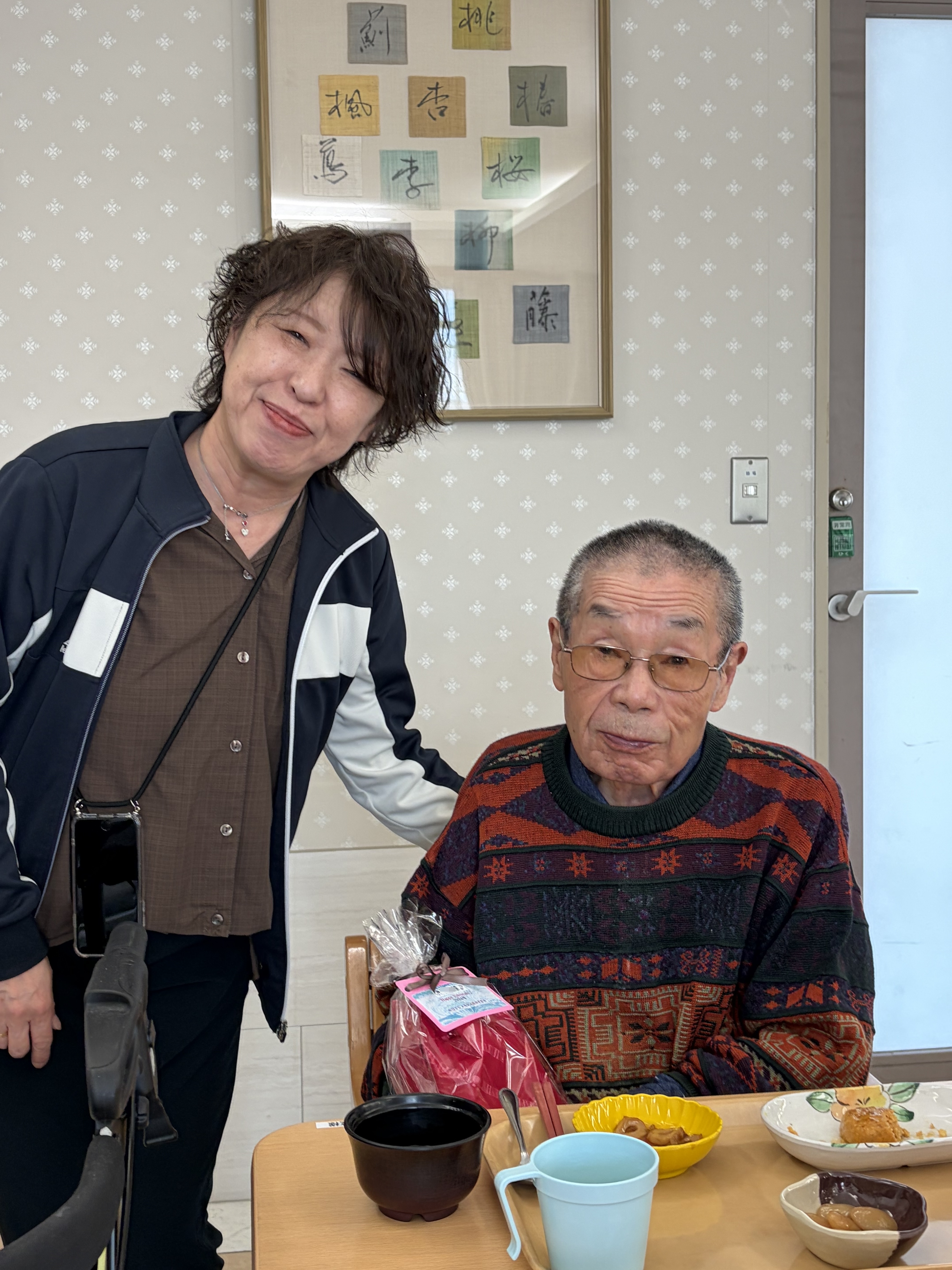 こちらのご入居者様は甘いものがお好きではないので、おかきをご用意させていただきました♪「ありがとうございます」とお喜びいただきました☆