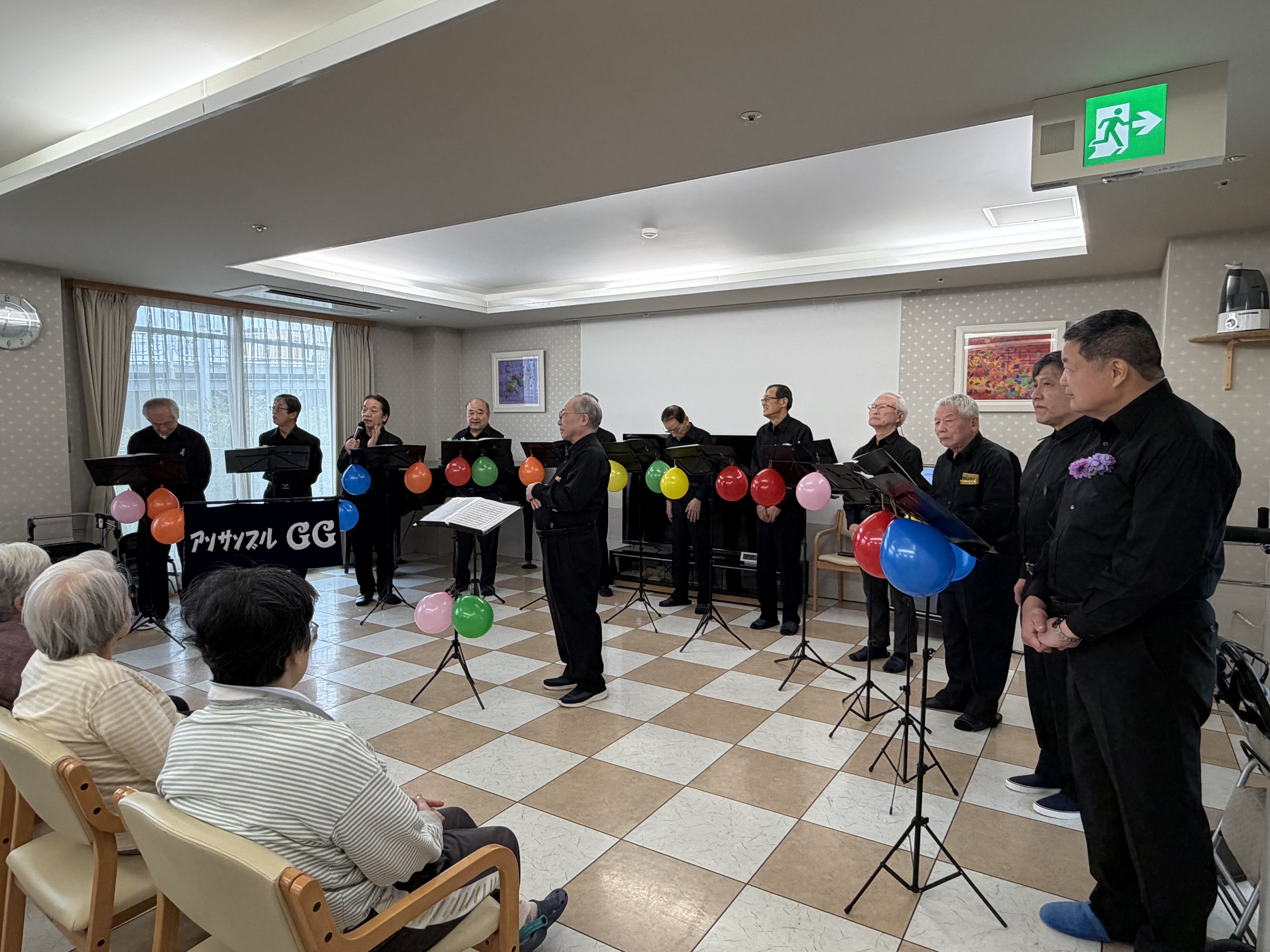 昨年からずっと当施設管理者がご入居者様にアンサンブルGGの皆様の唄声を聞いていただきたくて、ラブコール♪をしていました。