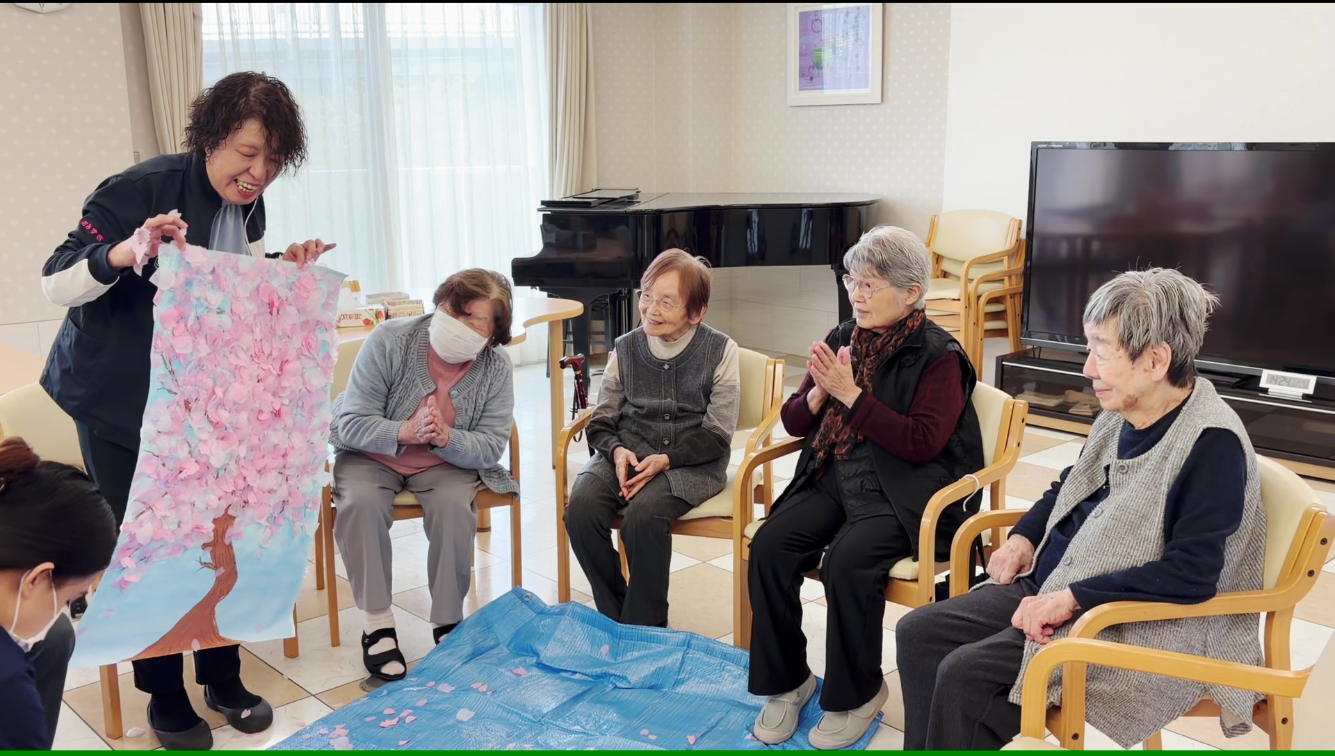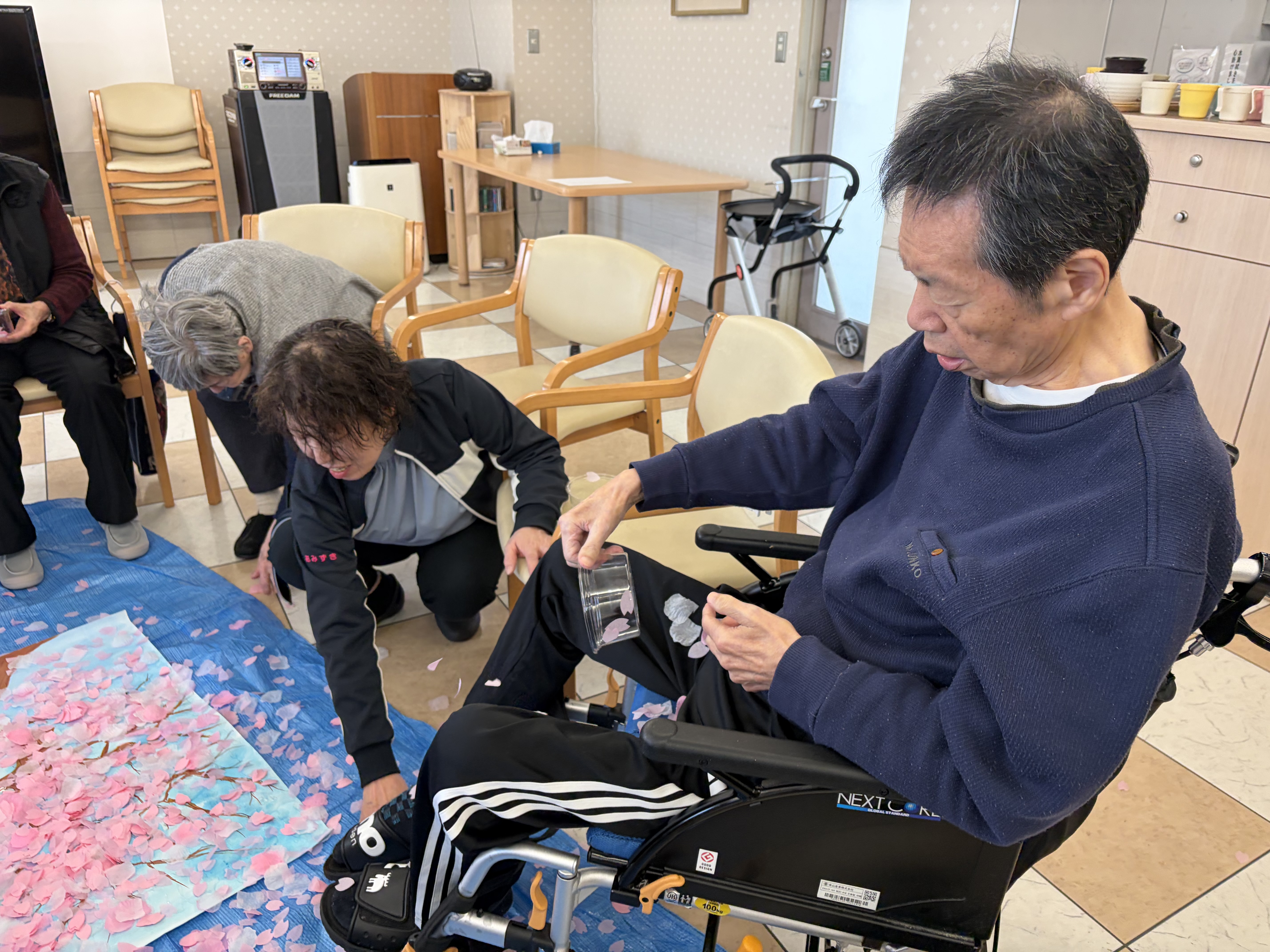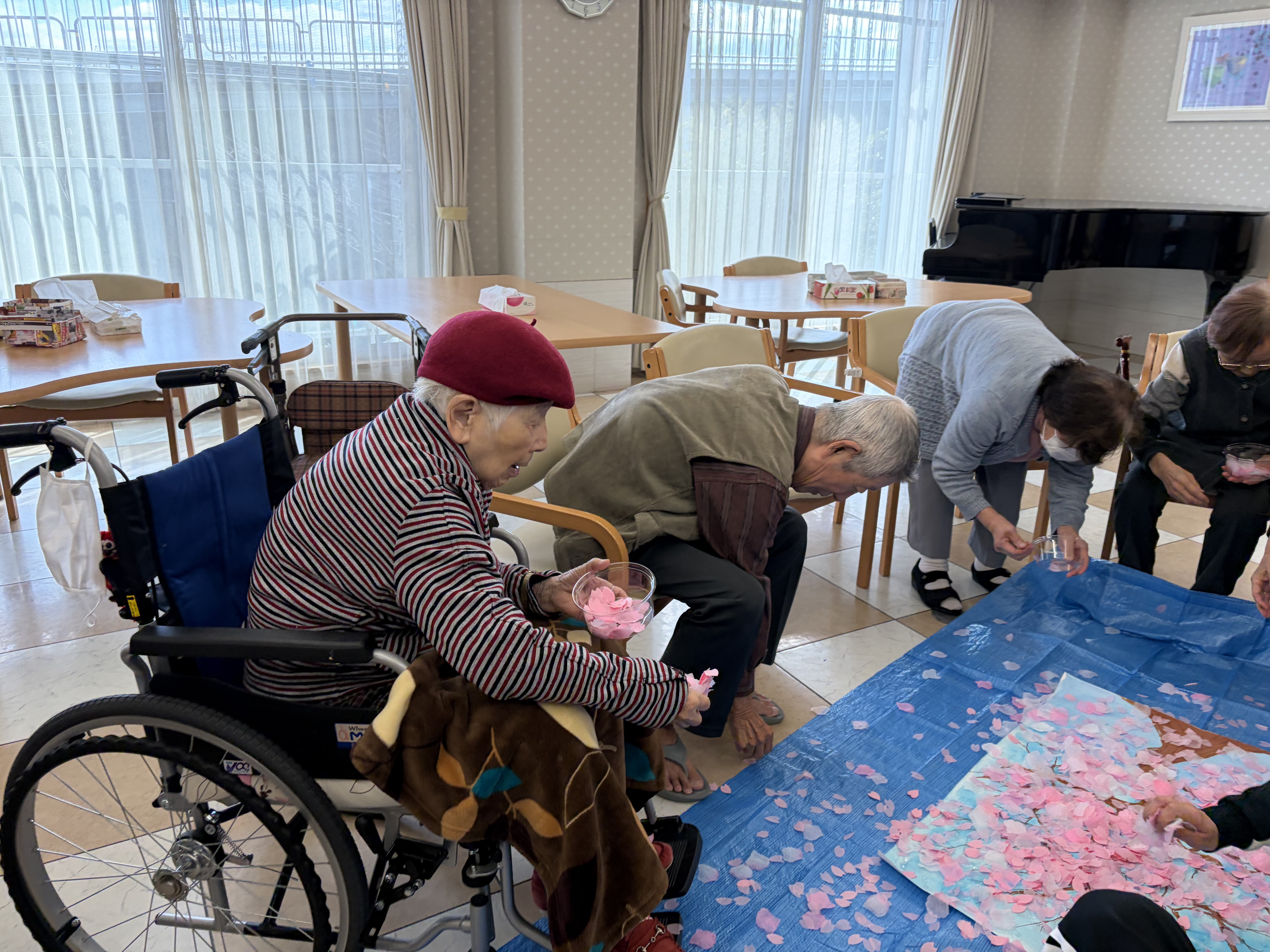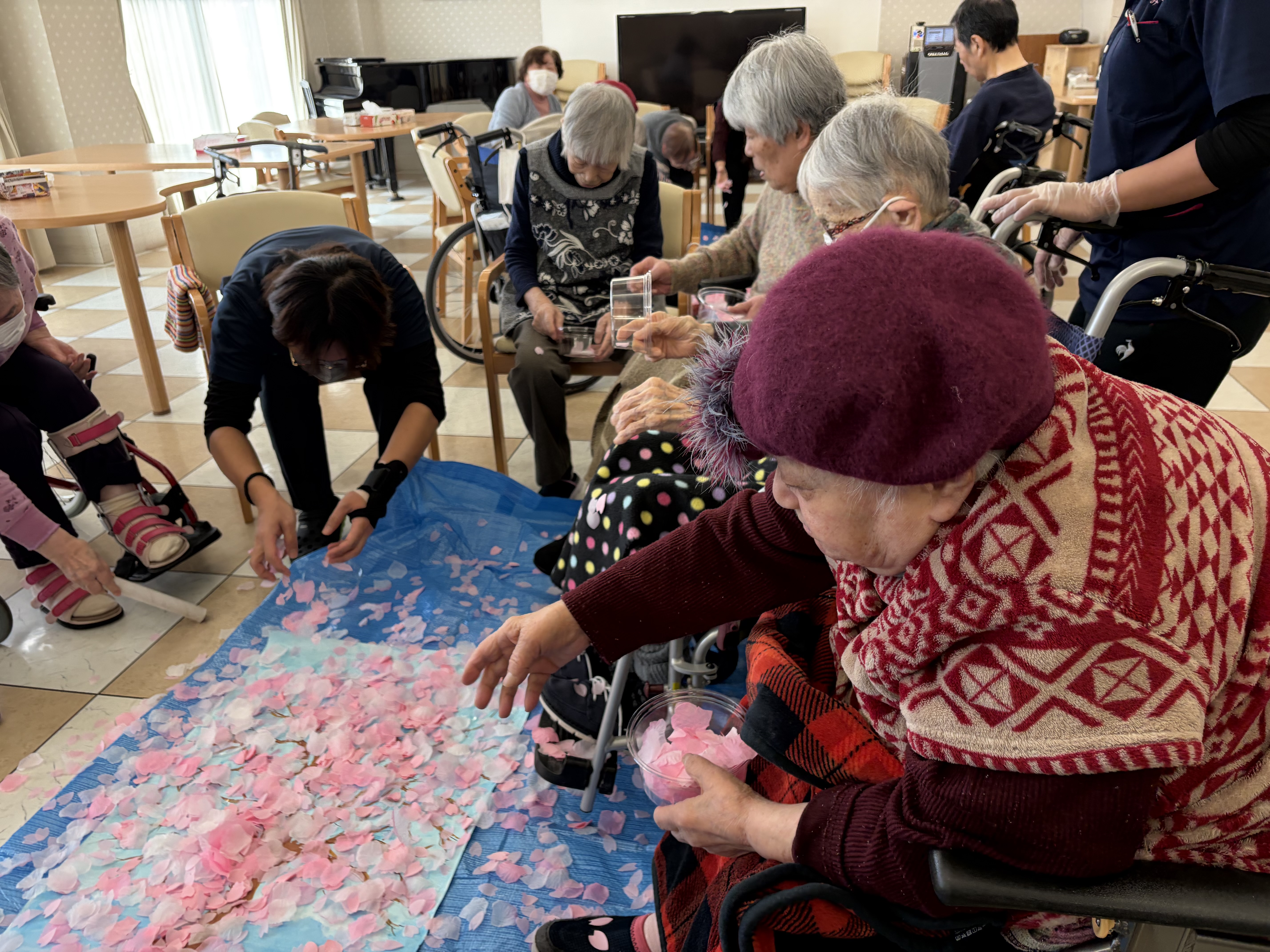 車椅子をご利用のご入居者様にも届く範囲で桜の花を咲かせていただきました☆