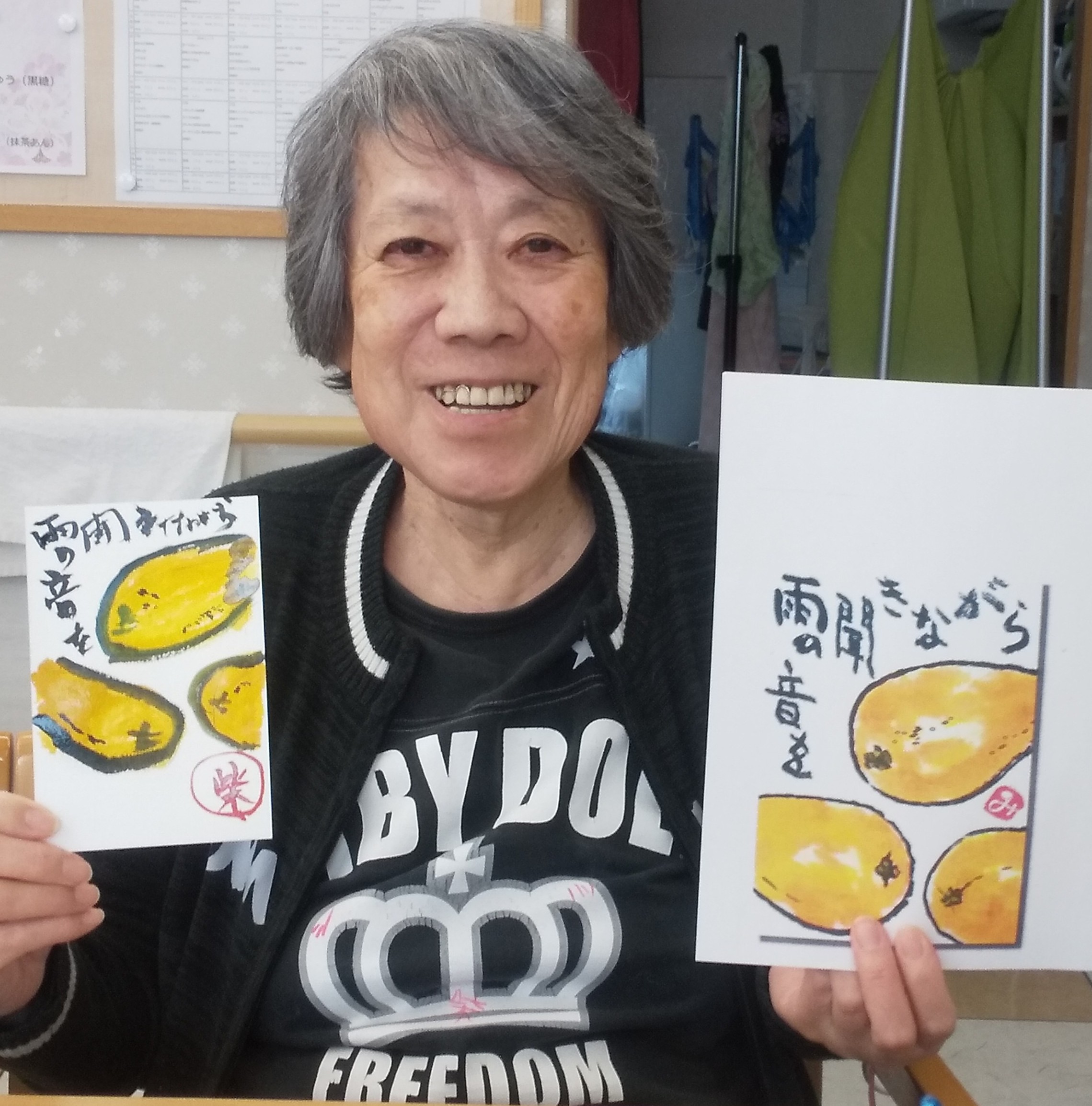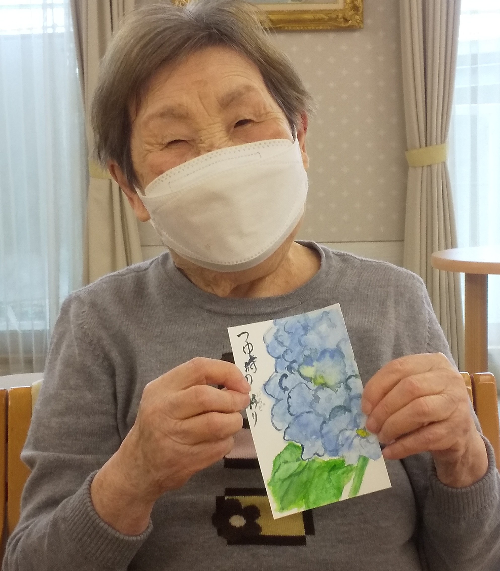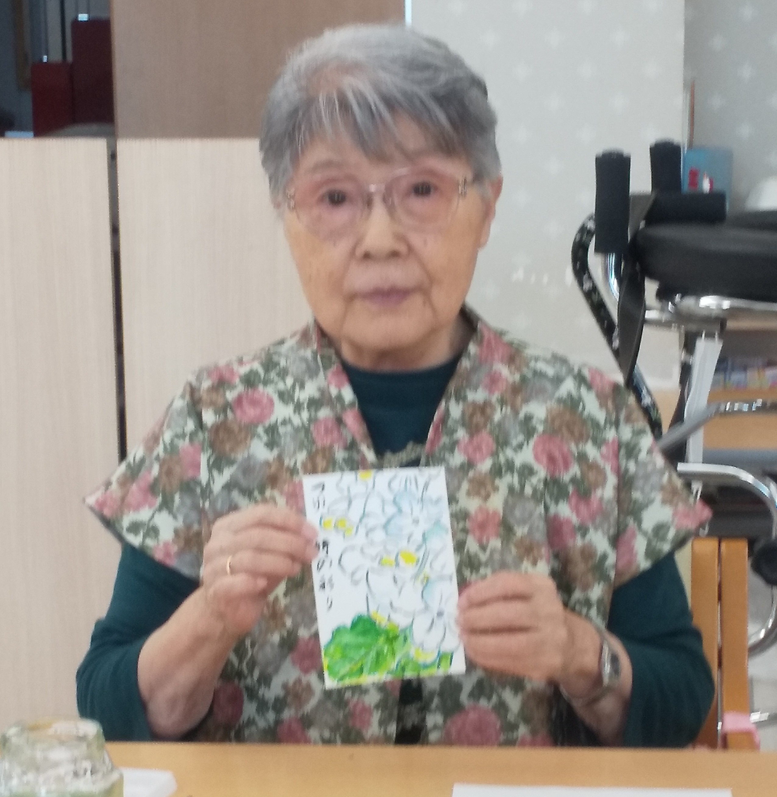 少人数での開催となりましたが絵手紙が大好きなご入居者様がご参加くださいました。ご参加いただいた皆様のご様子と完成した作品をご紹介致します ♪