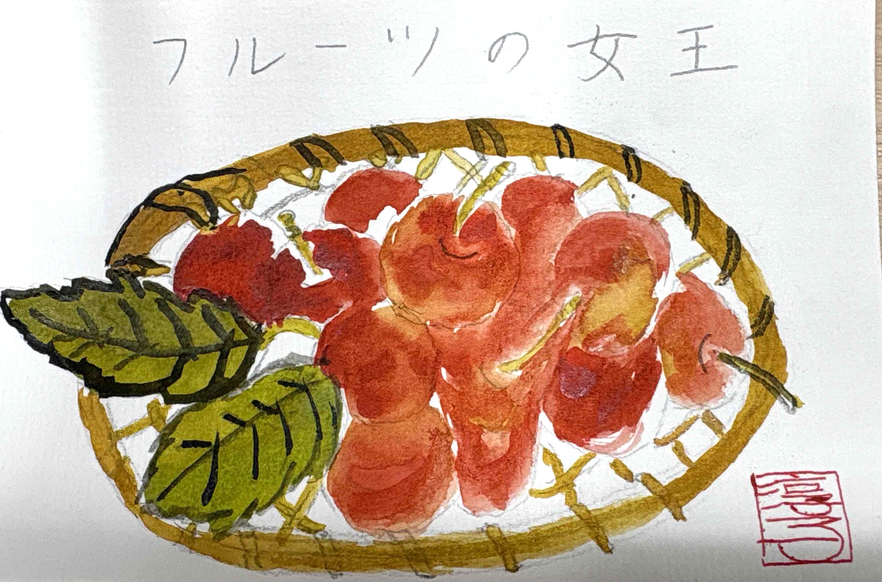 ☆1番人気なのが季節の果物、『さくらんぼ』です。細かいところが多いですが、上手く書けるかな(^_^)/