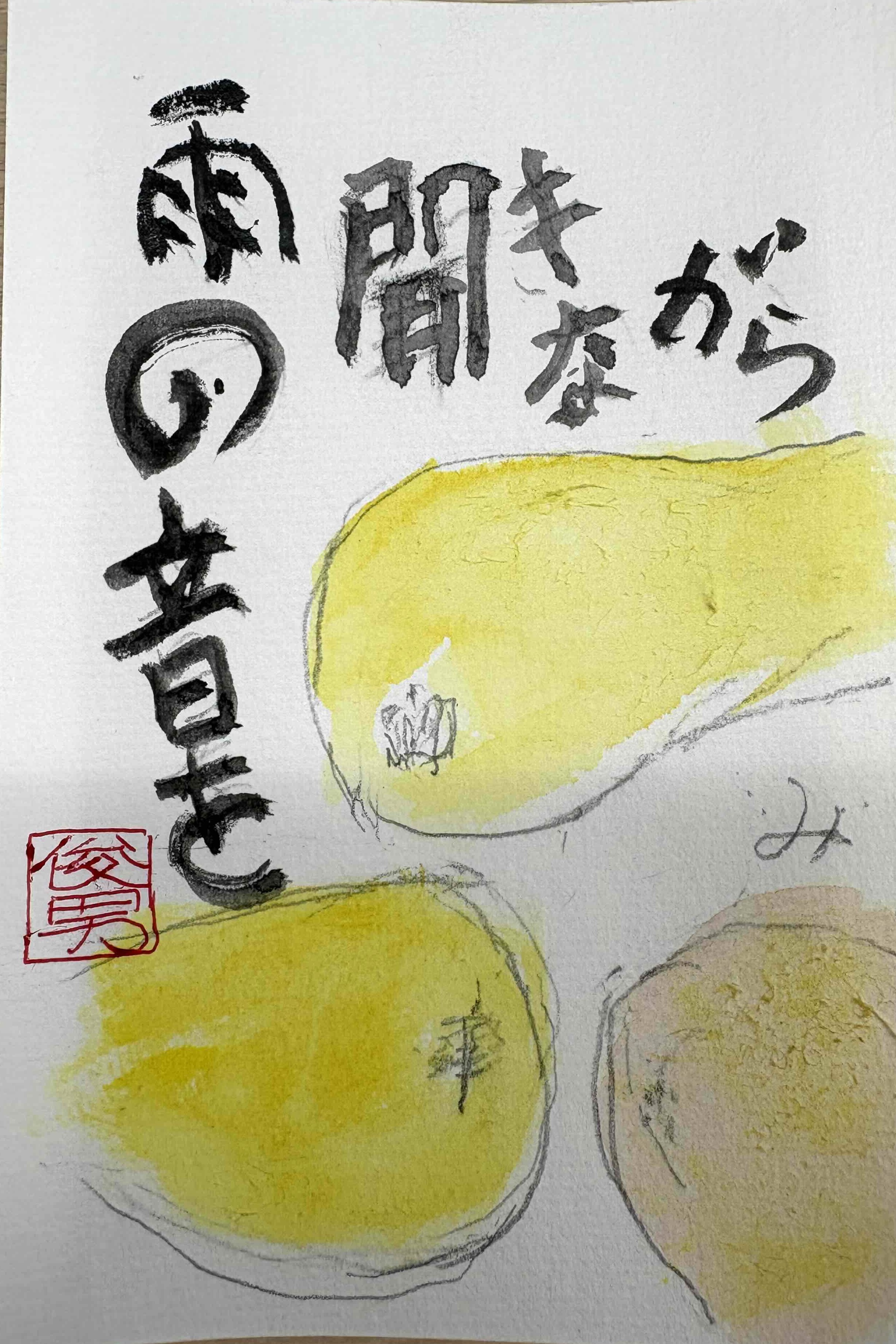 ☆季節の果物その2『びわ』です。みなさん個性が出ていますね!黄色でも色々あって素敵です!!