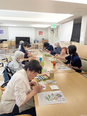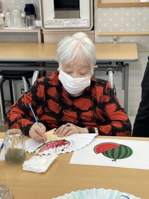 7月レクリエーション 夏祭りに向けてオリジナル扇子を作りましょう② ♪